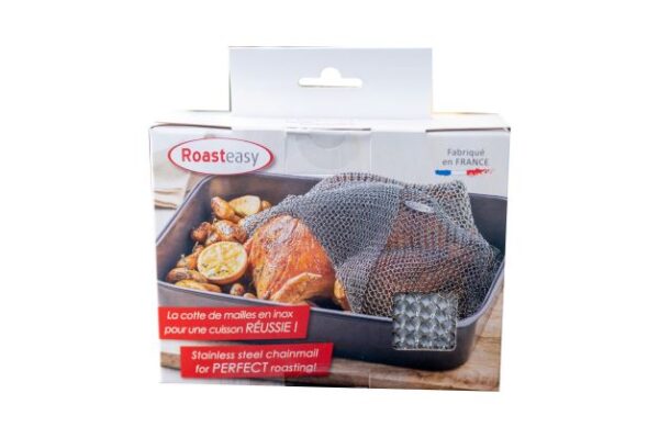 Made of high quality European food grade stainless steel chainmail, the Roasteasy will cover even the most awkwardly shaped birds and large joints of meat. Using the Roasteasy allows the outside of the roast to crisp and brown evenly, while the juices are retained inside. We have found it excellent for creating a crunchy crackling on all pork roasts, without fat spitting and spraying inside your oven. Ideal for use on vegetables and in barbeques – and the icing on the cake is that it replaces baking beads when blind baking pastry. This sustainable product lasts a lifetime and reduces the need of tinfoil. To clean, simply throw into your dishwasher or soak in a bowl of soapy water.